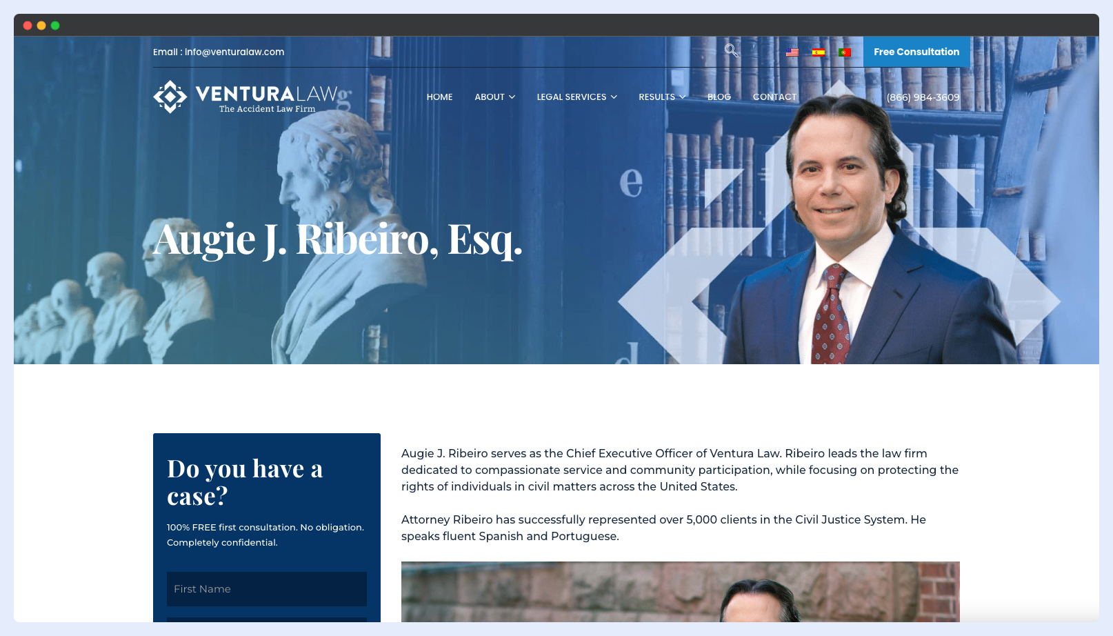 Our team has created an effective, user-friendly, and aesthetically pleasing presentation of Ventura Law’s offerings.